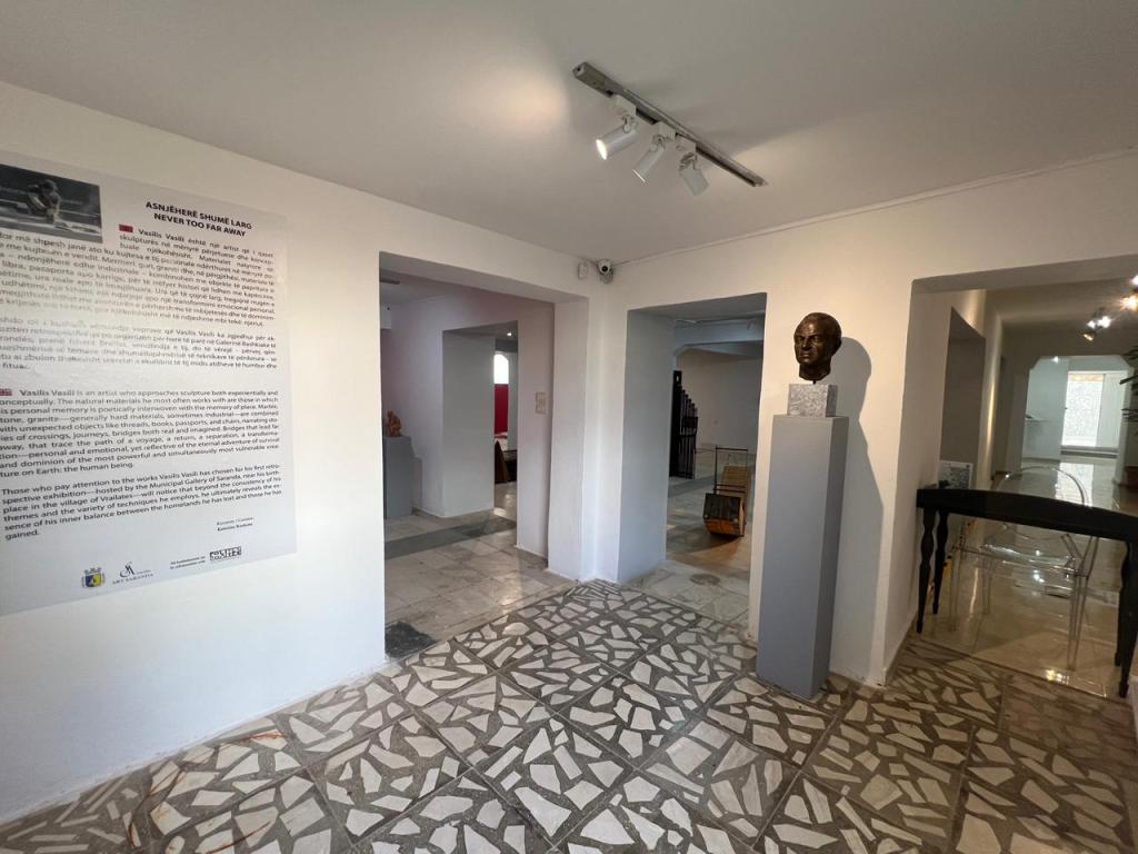 Αν προσέξει κανείς τα έργα που επέλεξε να δείξει στην αναδρομικού χαρακτήρα έκθεση που πραγματοποιείται στη Δημοτική Πινακοθήκη των Άγιων Σαράντα, κοντά στο χωριό Βραΐλάτες, όπου και γεννήθηκε, θα διαπιστώσει ότι, πέρα από τη σταθερότητα των θεμάτων του και την ποικιλία των τεχνικών που χρησιμοποιεί, στην ουσία αποκαλύπτει εδώ το μυστικό της ισορροπίας του ανάμεσα, στις πατρίδες που έχασε και κέρδισε. Ανάμεσα στα πρόσωπα και τις εικόνες που τον διαμόρφωσαν και τον διαμορφώνουν, ανάμεσα στις συγκρούσεις που τον οδήγησαν σε νίκες ή σε ήττες, ανάμεσα στο σύγχρονο και το αρχέγονο. Στη μικρή αυτήν έκθεση, που φαίνεται να έχει μεγάλη σημασία για τον ίδιο, ομολογεί ότι όλα αυτά συνυπάρχουν και συνδιαλέγονται σιωπηλά, μέσα του, εκεί που βρίσκεται η ανεξάντλητη πηγή της έμπνευσης. Εκεί που η μνήμη, η επιθυμία και το ένστικτο, βρίσκουν τον τρόπο να εκφραστούν, μέσα από την ύλη, διατηρώντας πάντα κάτι όμως από τη διαδρομή από το άυλο στο υλικό, από το αόρατο στο ορατό, από την έννοια στη φόρμα. Ουσιαστικά μας ψιθυρίζει, ότι το πραγματικό ταξίδι συντελείται καταρχήν εσωτερικά. Η απαρχή της δημιουργίας κυοφορείται στο πνεύμα και το βίωμα του καλλιτέχνη. Γι’αυτό, όπου και αν βρίσκεται αυτός δε θα είναι «Ποτέ πολύ μακριά» από αυτό που φέρει μέσα του: τον κόσμο του.